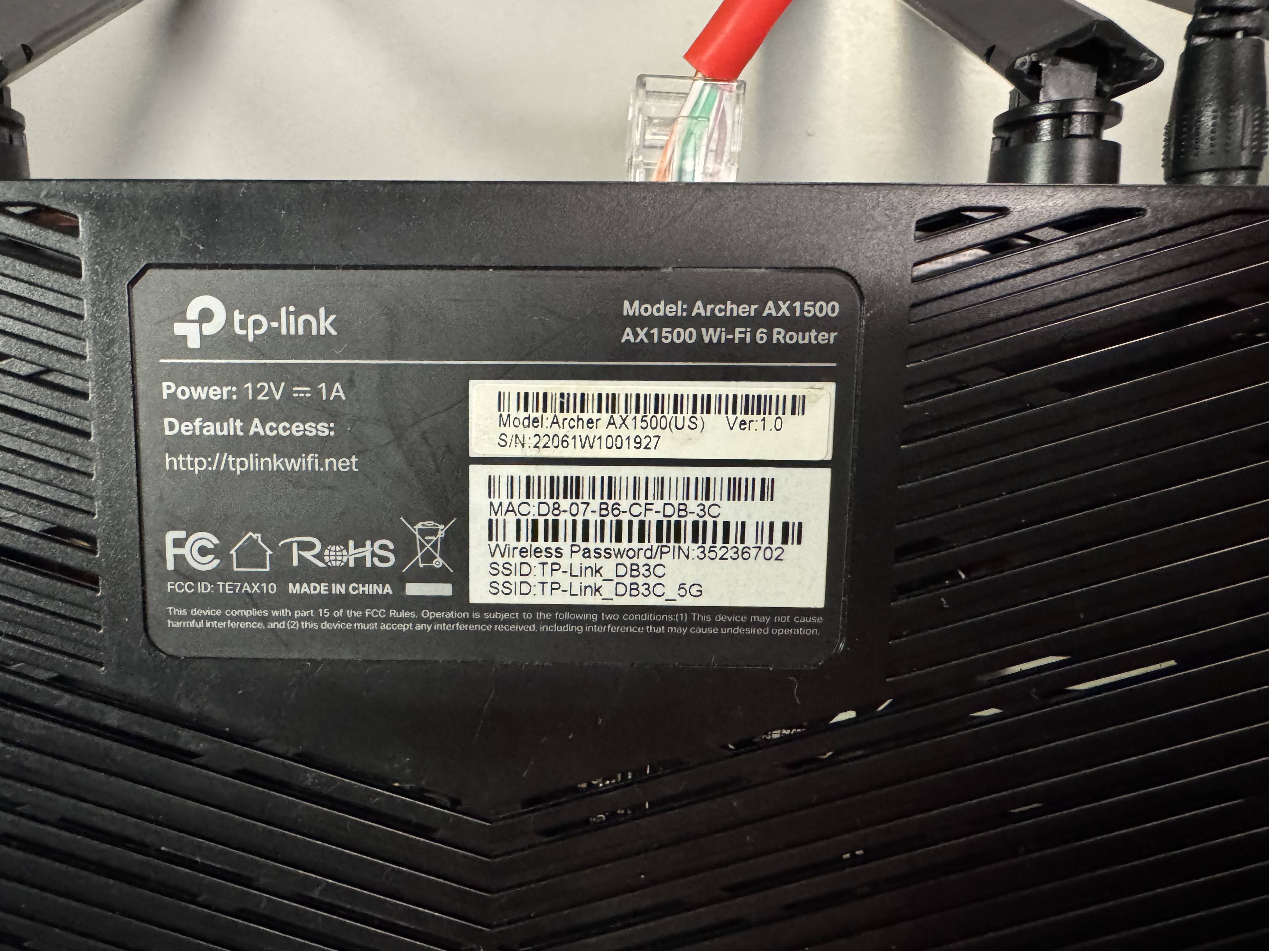 Now that you the router is connected to us, it’s time to connect you to the router. In the next steps you may either connect your device via an ethernet cable attached to the orange ports on the router, or join the wi-fi. To figure out the name of your wi-fi you will want to consult the sticker on the bottom of your router: