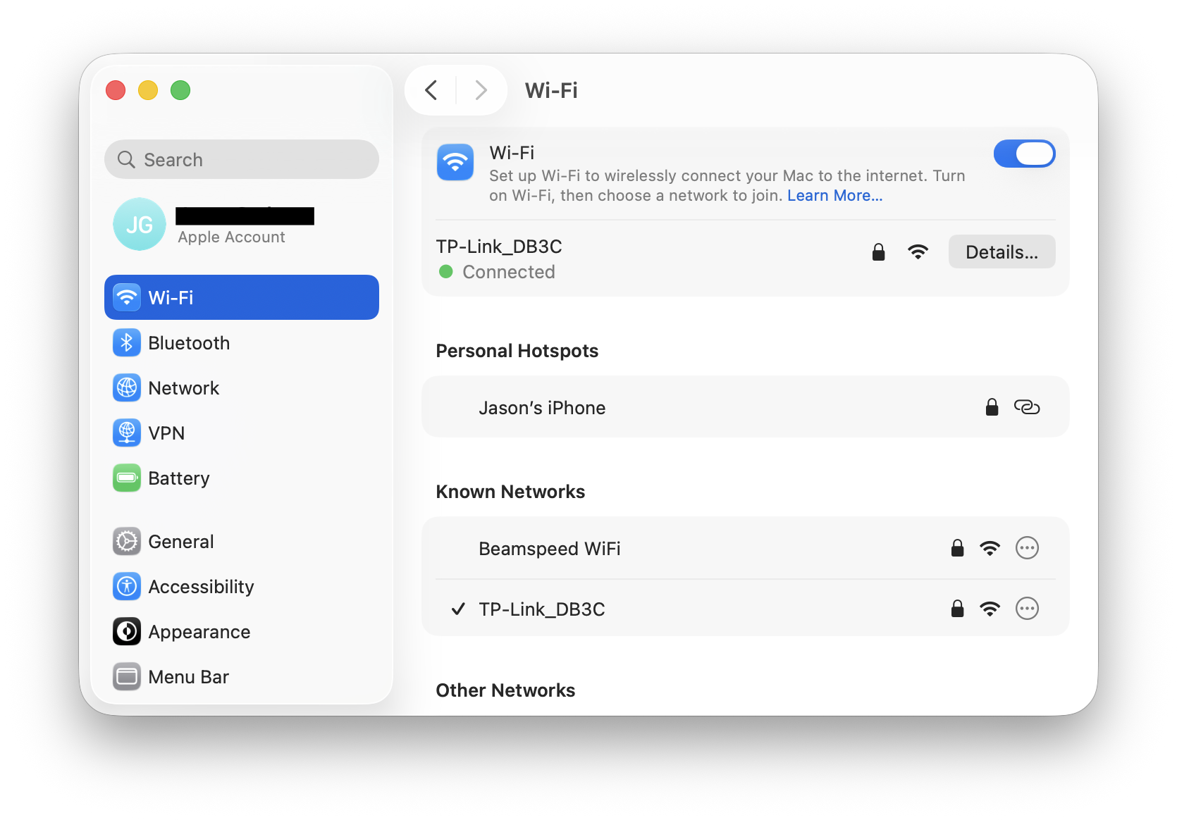 In This example, the name of the wi-fi network would be TP-Link_DB3C and the password would be 35236702 with this information you can go into the settings application of any device and join onto this network. This is what it will look like at least on MacOS when you join the wi-fi network